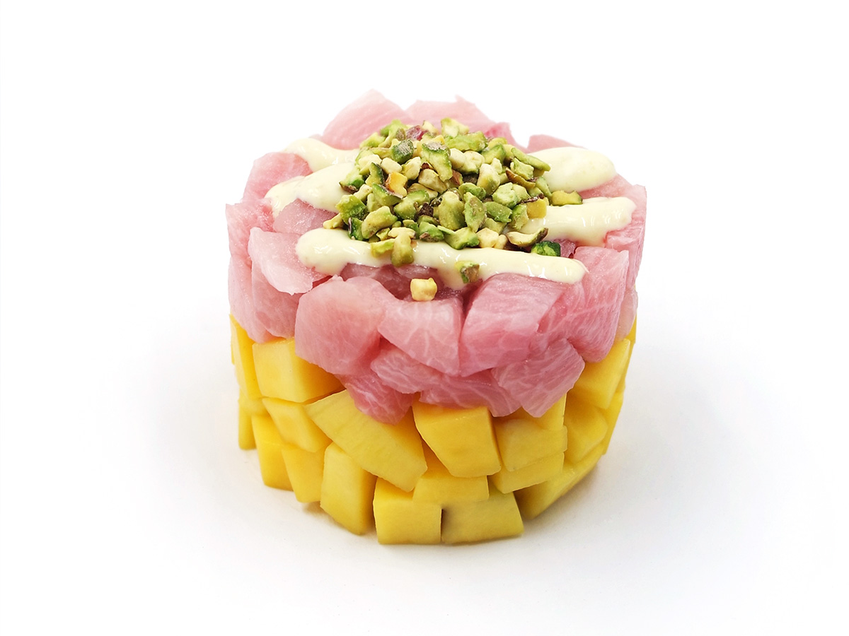 Assapora la primavera con la nuova Tartare; Ricciola marinata al limone, Mango, Salsa Yuzu Mayo e granella di pistacchi