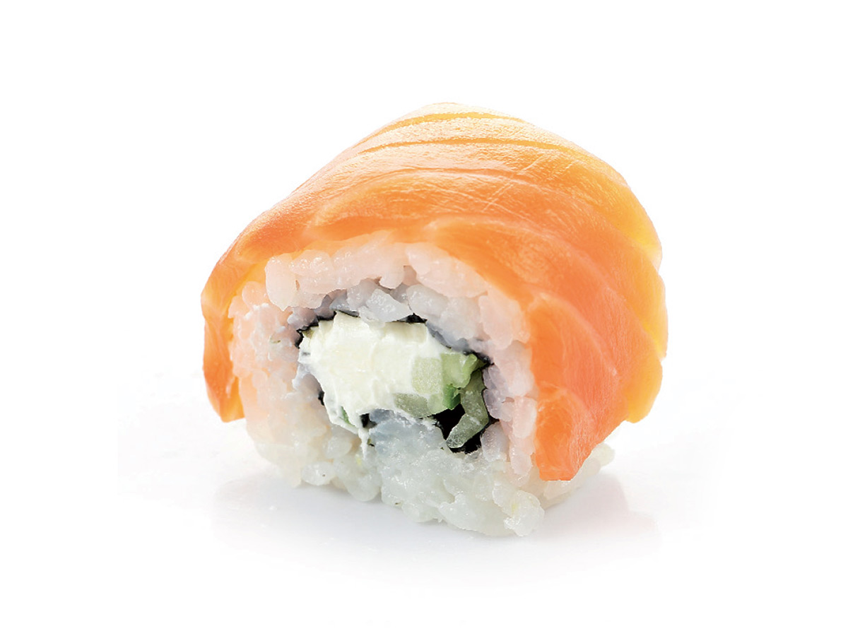 Roll Avvolto da Salmone Affumicato, all’interno philadelphia e cetriolo